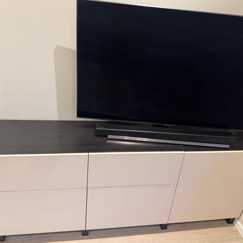 BESTÅ TV benk fra IKEA brunsort/lappviken skuffer. OBS hull til dekoder osv øverst/midt. Se annet bilde.