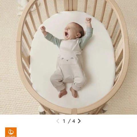 Så og si ubrukt. Baby lagt i sengen 3-4 ganger. Kjøpt ny på barnas hus.Ferdig montert. Hjul på med lås. Flott og nydelig seng på baby/ barn. Kan bygges på, se barnas hus.