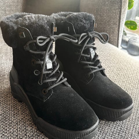 Nydelige vintersko i skinn fra Michael Kors. Str. 8 (tilsvarer 38,5). Fuskepels i toppen, men uten fôr inni.