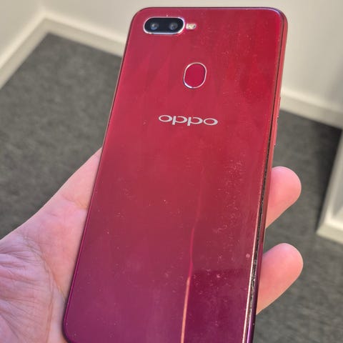 Samsung Galaxy A-series mobiltelefon med 32 GB lagringskapasitet. Enheten har en gullfarget ytterside og fysisk hjemknapp. Mobilen er egnet for daglig bruk og kommunikasjon. Det ene hjørnet er litt ødelagt, batterilevetiden er god.