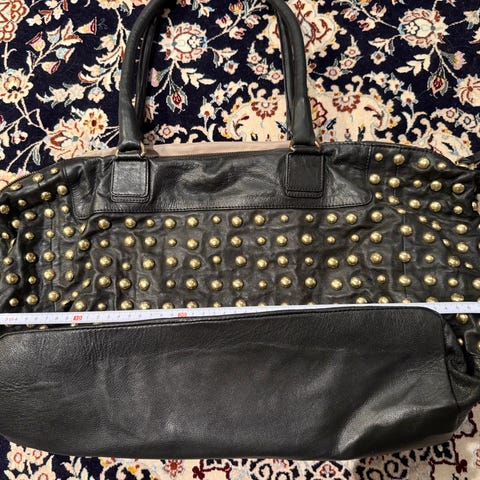 DAY ET Dame skinnveske laget av lær i svart farge. Vesken har en gullfarget kjede som skulderstropp og en dekorativ gullspenne på fronten. Den har rom for oppbevaring og en spenne for lukking. Kan også brukes som clutch med avtagbar stropp.