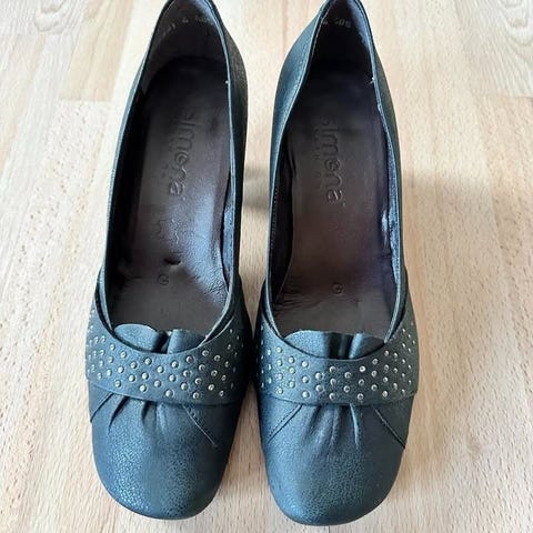 Selve skoen er i mykt semsket skinn å foret i mykt varmt saueskinn. Disse fremstår som nye.