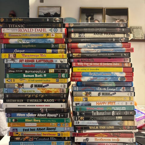52 vhs til barn selges samlet pakker i eske og kan sende