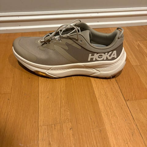 Hoka Sneakers joggesko i størrelse 44. Skoene har en robust konstruksjon med godt mønster på yttersålen for grep. Fargen er beige/brun. Egnet for løping og fritidsbruk.