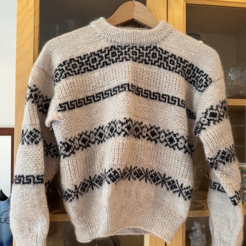 Porcelainsweater strikket i tynn peer gynt og tynn silk mohair fra sandnesgarn