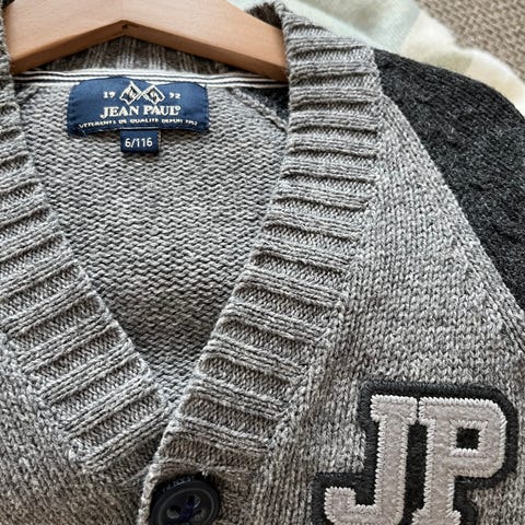 Kjempefin og lite brukt Jacadi ull genser i størrelse 116 for gutt. Genseren er grå og laget av ullmateriale.