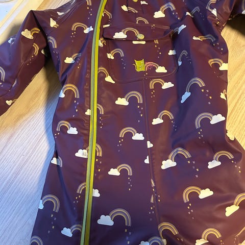 Godt brukt vinterregndress, men fortsatt bruk igjen. Slitasje på kne og sete (se bilde).