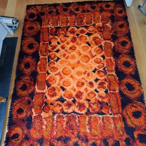 Håndlaget knyttet teppe. Retro. I veldig fin stand