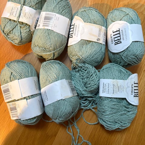 Selger ca 155g med rød Rød Drops flora og ca 115g med hvit Drops Flora. Kun ett hvitt nøste som er helt, resten er strikket litt av. Samme farge har samme innfarging.