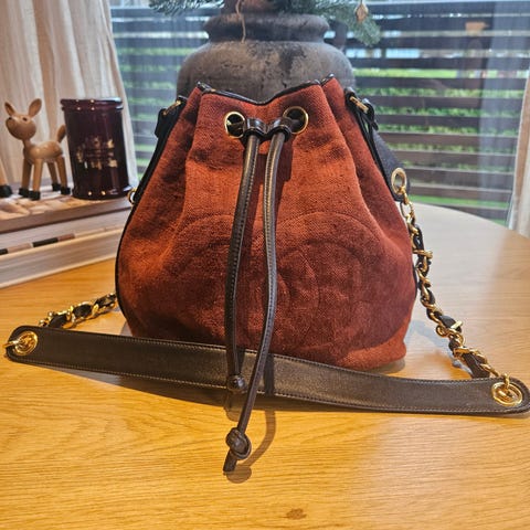 Chanel Bucket Shoulder Bag i svart, kraftig caviar skinn med en lekker detalj på drawstring. Sølv hardware. Vesken er fra 2010-2011. Svart sateng stoff på innsiden.