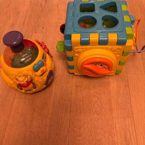 Telefon med lyd.And med musikk og dans. Plastskåler til baby.Pent brukt av 1 barn.Leker med fungerende batteri.