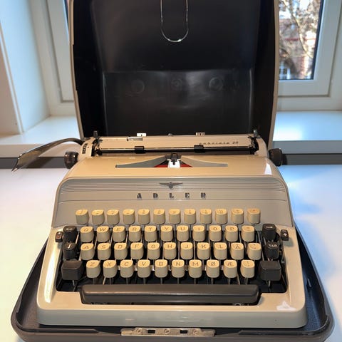 Jeg selger en vintage og veldig kul Lectra 2000 mekanisk skrivemaskin i bærbar utførelse med original koffert. Denne tar seg veldig godt ut på hyllen eller det gamle skrivebordet på kontoret.