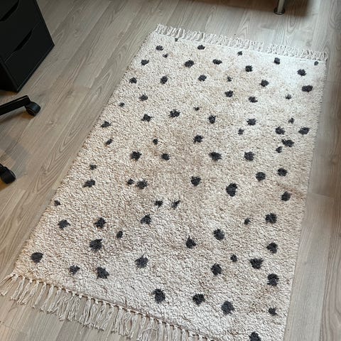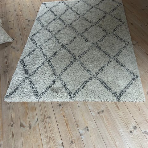 Bohus teppe med mønster i hvit / beige og svart farge. Teppe med et geometrisk mønster som gir et dekorativt uttrykk. Egnet for bruk i ulike rom i hjemmet.