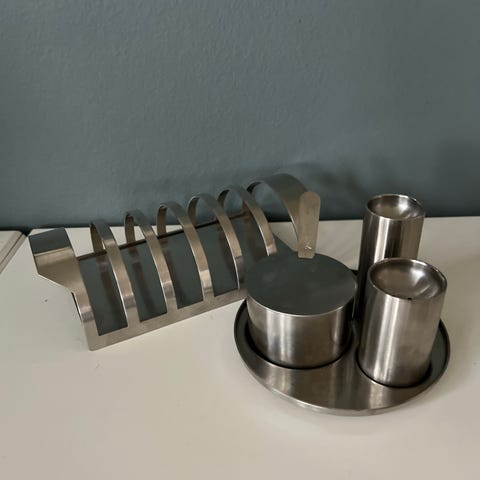 Kjøkken, kitchen, kjøkkenutstyr, fat, servering, brett, serveringsbrett, design, ikonisk, iconic, servise, plat de menage, mustard, ost, parmesan, condiments, metall, rustfritt stål, stainless steel, metal, retro, interiør, space age, rom-alder, postmoderne, post-modern, MCM, bauhaus, dansk design, danish, nordisk design, nordic, Finnish, Nordiska Galleriet, Expo Nova, Lanna, Länna møbler, Finnish Design Shop, Illums Bolighus