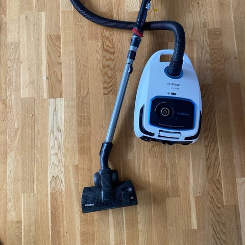 Bosch Serie 2 støvsuger i rød farge. Modellen har et kompakt design med justerbar sugeeffekt. Utstyrt med standard støvsugermunnstykke og teleskoprør. Passer til vanlig bruk i hjemmet.