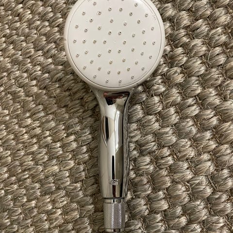 GROHE hånddusj med slange i svart farge. Produktet inkluderer en hånddusj og en fleksibel slange. Materialet er tilpasset for bruk i baderom.