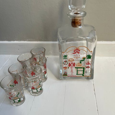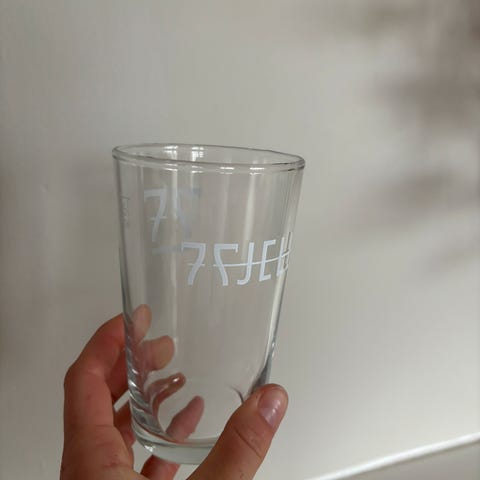 &Tradition glass med trykk. Glassene har et motiv med en person og tekst, og er laget i klart glass. Egnet for servering av drikke.