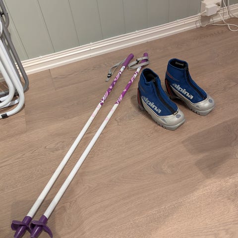 Dette er smøreski. Noen bruksmerker på skiene, men er fortsatt mye ski igjen.
