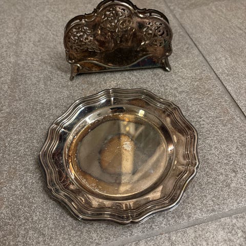 Vintage serveringsfat og skåler i sølvplett