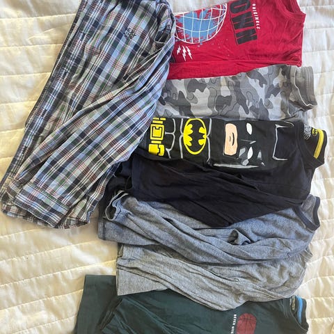 Klespakke til gutt 134/140, langermetrøyer, kortermet, 1stk dongeribukse str 152, Spiderman, Mickey Mouse, Minecraft, Sonic