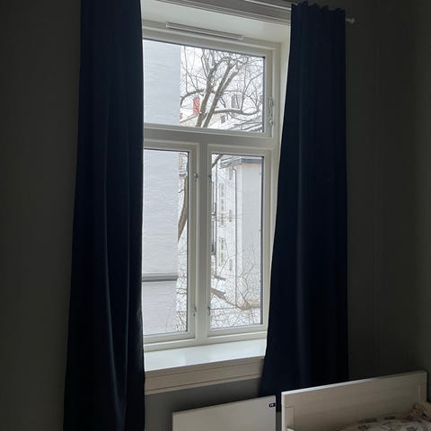 Pent brukte hvite gardiner. Brukt disse bak mørkleggende gardiner for en hotell-look. Ser ingen bruksmerker, men gardinene er brukt. Prisen er for begge gardinene. 140x250 cm på hver gardin.