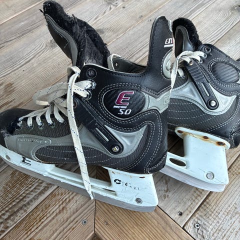 Selger ett par ishockeyskøyter str 45. De er brukt kun en sesong før de var for små for sønnen i huset, som nå bruker str 47, så veldig pent brukt uten noen nevnbar slitasje.