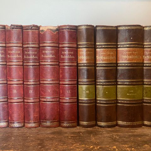 Åtte antikvariske bøker selges samlet.