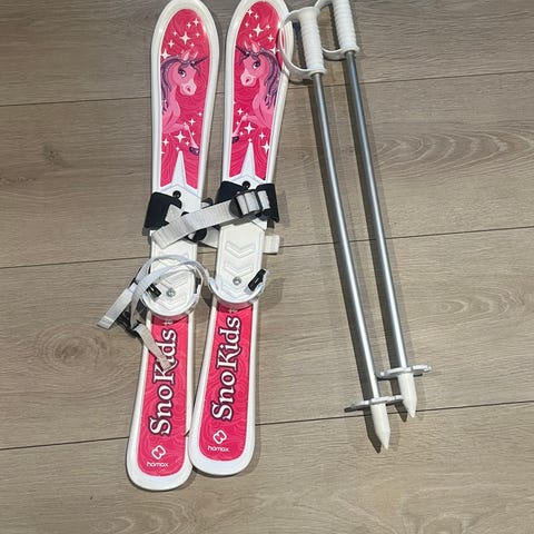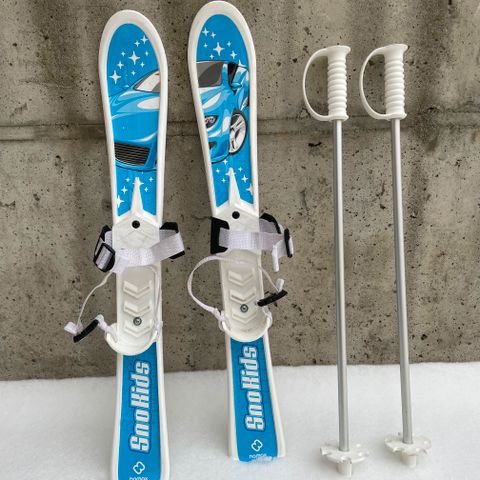 Sno Fiction skisett med staver er idéelt som barnets første ski. Skiene er lette, allikevel brede og stabile. Mønster på undersiden hindrer altfor god glid.
