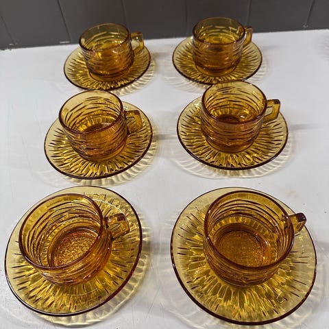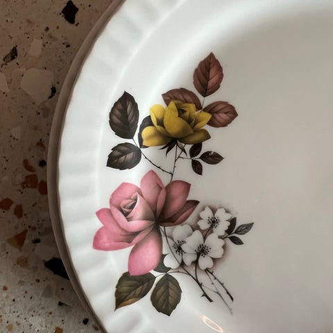Fem vintage asjetter i dekoren Rebecca fra Figgjo Flint