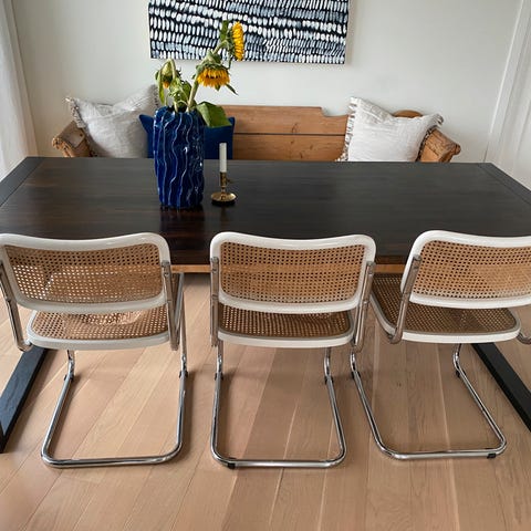 Selger 4 stk Ton No 14, pent brukt. Uten noen synlige bruksmerker. Det følger også med en stol til hvor det er et hull i rottingen. Dette kan repareres hos møbelsnekker. Derav prisen totalt. Stolene må hentes :) selges samlet.