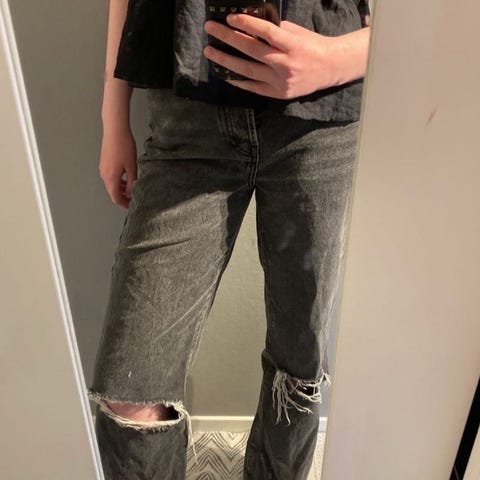 Bik Bok Straight Denim Bukse i blå farge. Størrelse M med midjevidde W29/34Laget av denim materiale, designet for kvinner.kr100,-