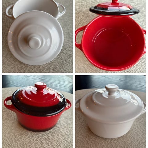 Alt er helt og pent brukt, uten synlige skader, nagg eller krakelering. Har stått mest til pynt i skap.