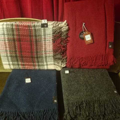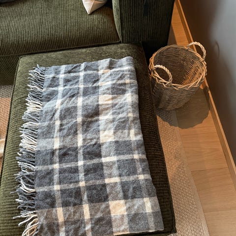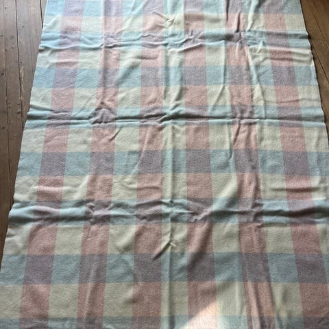Retro pledd i tynn ull, nyvasket og klart for ny eier.