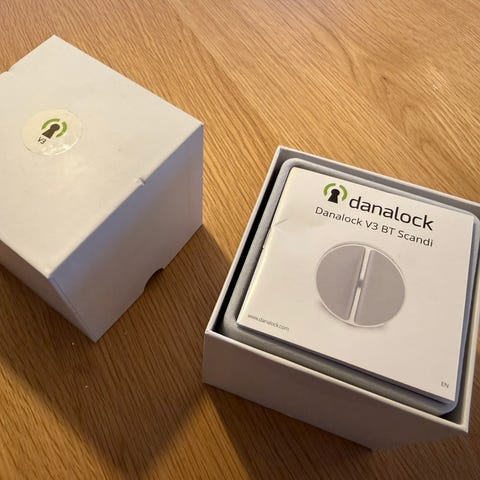 Kan låse opp med app, fingeravtrykk, kodebrikke eller pinkode.