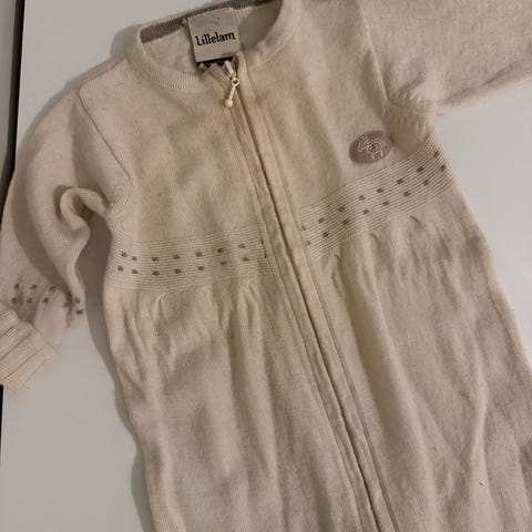 Lillelam ulldress i 100% merinoull. Turkis. God og varm og pent brukt.