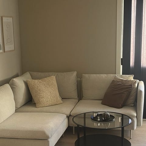 Pent brukt velour sofa, selges pga plass mangel. Sofaen har stått så og sei ubrukt siden kjøp. da kjellerstuen kje e blitt brukt.
