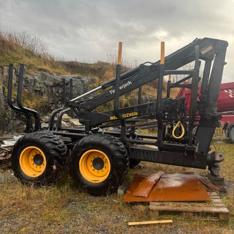 Dalen hydraulisk sponavsug 2041-H, Dalen hydraulisk stokkestativ 2048-H3, Traktorhenger Junkkari-10 med grunnlemmer og sidehengslete kornkarmer, Lange gaffler til pallgaffel. Disse legges ut i egne annonser.