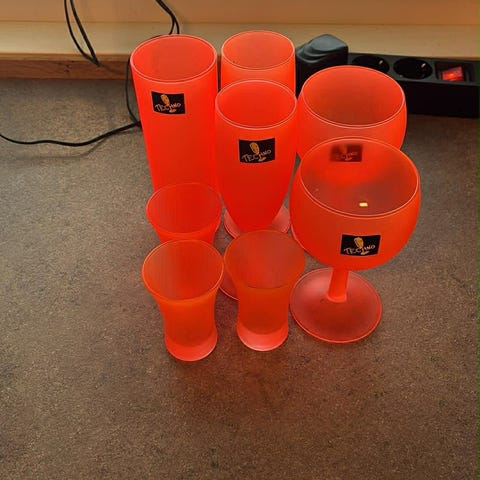 Seks blanke melkeglass i serien Truls fra Hadeland glassverk. Designet av Willy Johansson på 50-tallet. Fremstår som svært lite brukt.