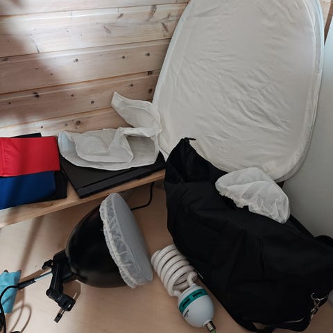 2 stk RayD8 Lastolite fotostudio lys. Lysutstyr egnet for fotografering i studio. Reflektoren er laget av metall og har en diameter som gir bred lysfordeling. Produktet er designet for å gi jevn belysning ved fotografering. Ikke ledlampe. Selges uten lyspære
