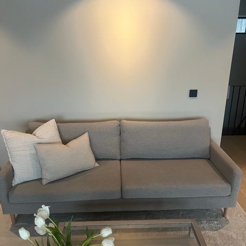Selger Vilmers Alps 3-seter sofa i fargen sneak Ginger Root (grå). Sofaen er helt ubrukt og fremstår som ny. Kjøpt i oktober 2025, men det ble feil farge ved bestilling, og fraktemballasjen er brutt, så den kan ikke returneres til butikk..