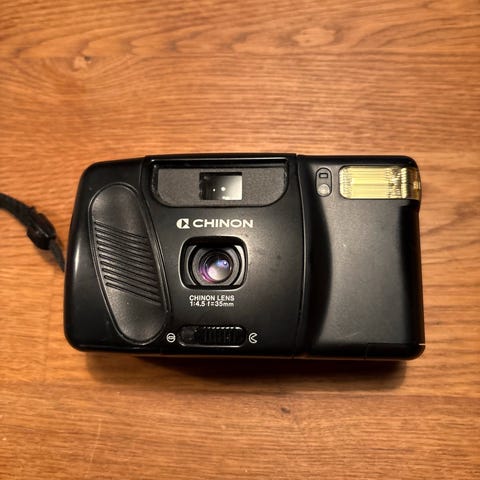 Chinon Autofocus 35mm kompaktkamera med autofokusfunksjon og innebygd blits.
