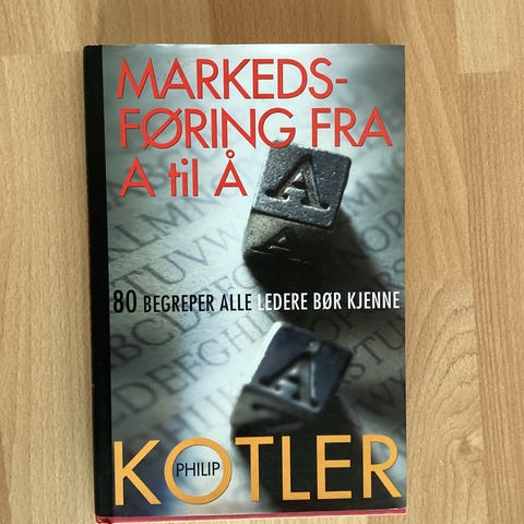 Selger Markedsføring fra A til Å av Philip Kotler – en praktisk og lettlest bok som forklarer 80 viktige markedsføringsbegreper på en oversiktlig måte.
