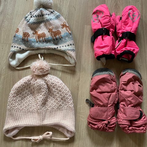 3 luer og et par vanter. Selges samlet. Passer ca str 1,5-4 år
