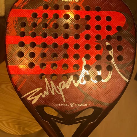 Selger en veldig lite brukt ionic pwr 2025 racket. Brukt ca. 7-8 ganger og som man ser på bildene har det falt av noen flak av lakken fra vanlig spill. Den er ikke slått i vegg eller bakke og er som ny i tilstand utenom merkene.