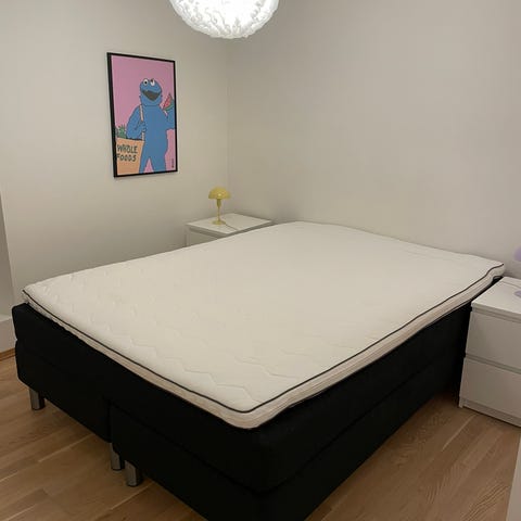 Kontinentalseng fra Bohus, modell Zen Atlantic (utgått modell) selges. Kjøpt høsten 2018, men må nå byttes ut grunnet behov for større seng. Den har 8 cm fast overmadrass, og selve madrassen er også hard. Pen hodegavl medfølger også, samlet nypris ca 11.000kr.