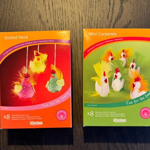 Selger en samling med tre hobbysett der man kan lage sin egen påskepynt samlet for 100 kr.