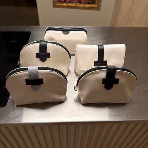 By Malene Birger toalettmappe laget av kunstlær. Designet for unisex bruk, egnet til oppbevaring av toalettsaker og små personlige eiendeler. Mappen har et romslig hovedrom med glidelås og elastisk lomme innvendig for organisering. I veldig fin stand med noen små bruksmerker inni, se bilde!