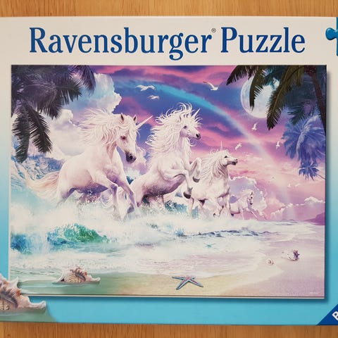 Selger et Ravensburger puslespill med 1000 brikker. Det heter: Unicorns in the forest.