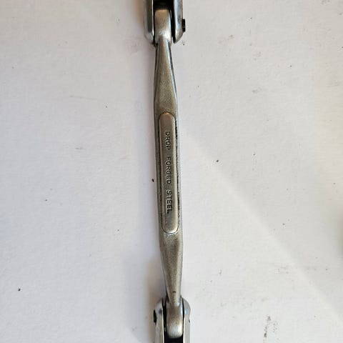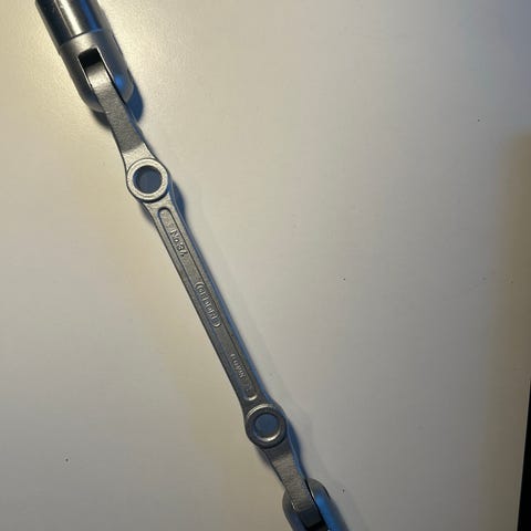 Tolvkantet, tynnveggede innbyrdes ulike gripeåpninger. Ekstra stor leddbarhet. Forkrommet. Polerte hoder, med hull for dreiestift. Ekstra dype kopper. Lengde 285mm.