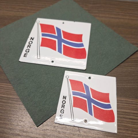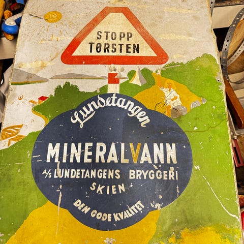 Skiltet er et samleobjekt, sannsynligvis fra 1930- eller 1940-tallet.